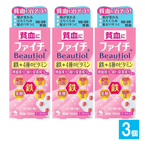 【第2類医薬品】ファイチ Beautiol(ビューティオール) 30錠×3個セット【小林製薬】貧血改善薬 貧血を治そう!鉄+4種の...