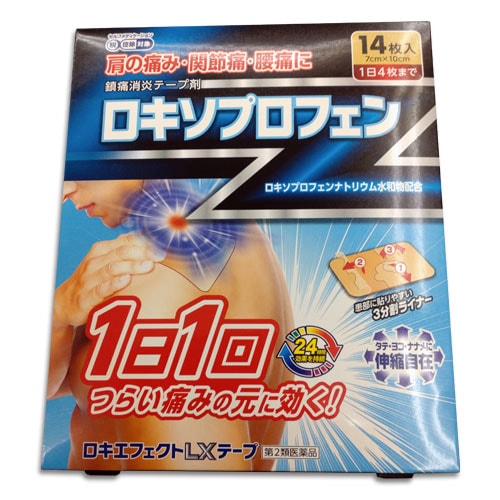 【第2類医薬品】★ロキエフェクトLXテープ 14枚入り【大石膏盛堂】肩の痛み、腰痛、関節痛に1日1回でつらい痛みのもとに効く 24...