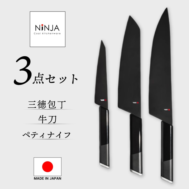 【A倉庫】包丁3本セット 《 NiNJA 》NiNJA Cool Kitchen Were 包丁3本セット(三徳包丁・牛刀包丁・ペ...