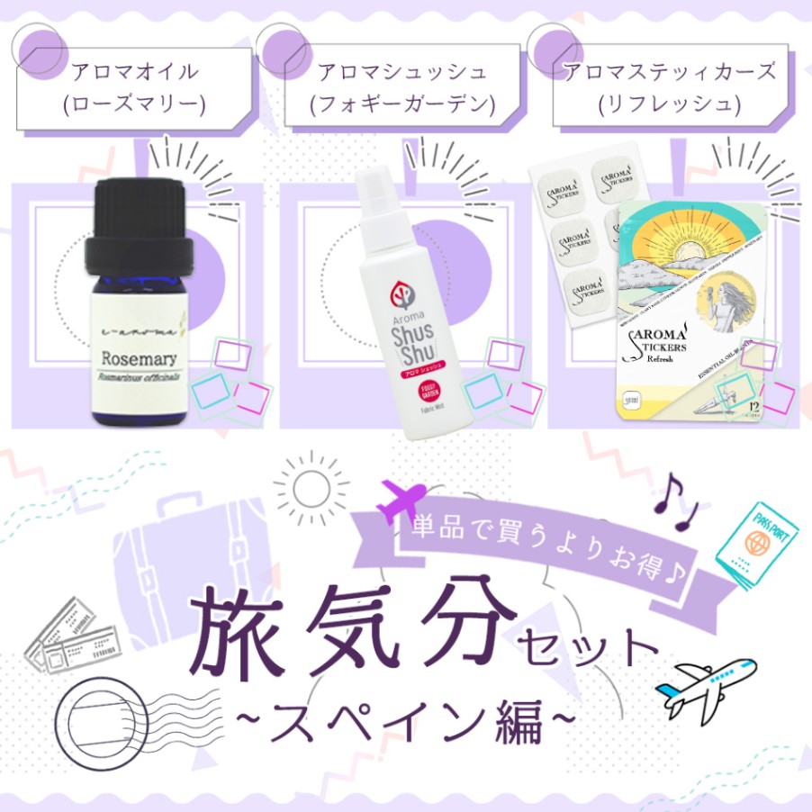 \アロマでお手軽旅行気分♪/単品で買うよりお得! 旅気分セット~スペイン編~〔 アロマオイル(ローズマリー) / アロマシュッシュ...