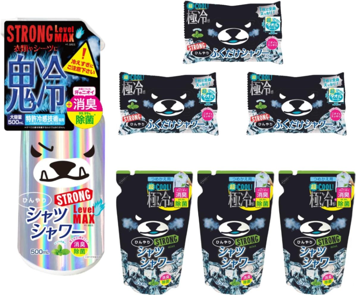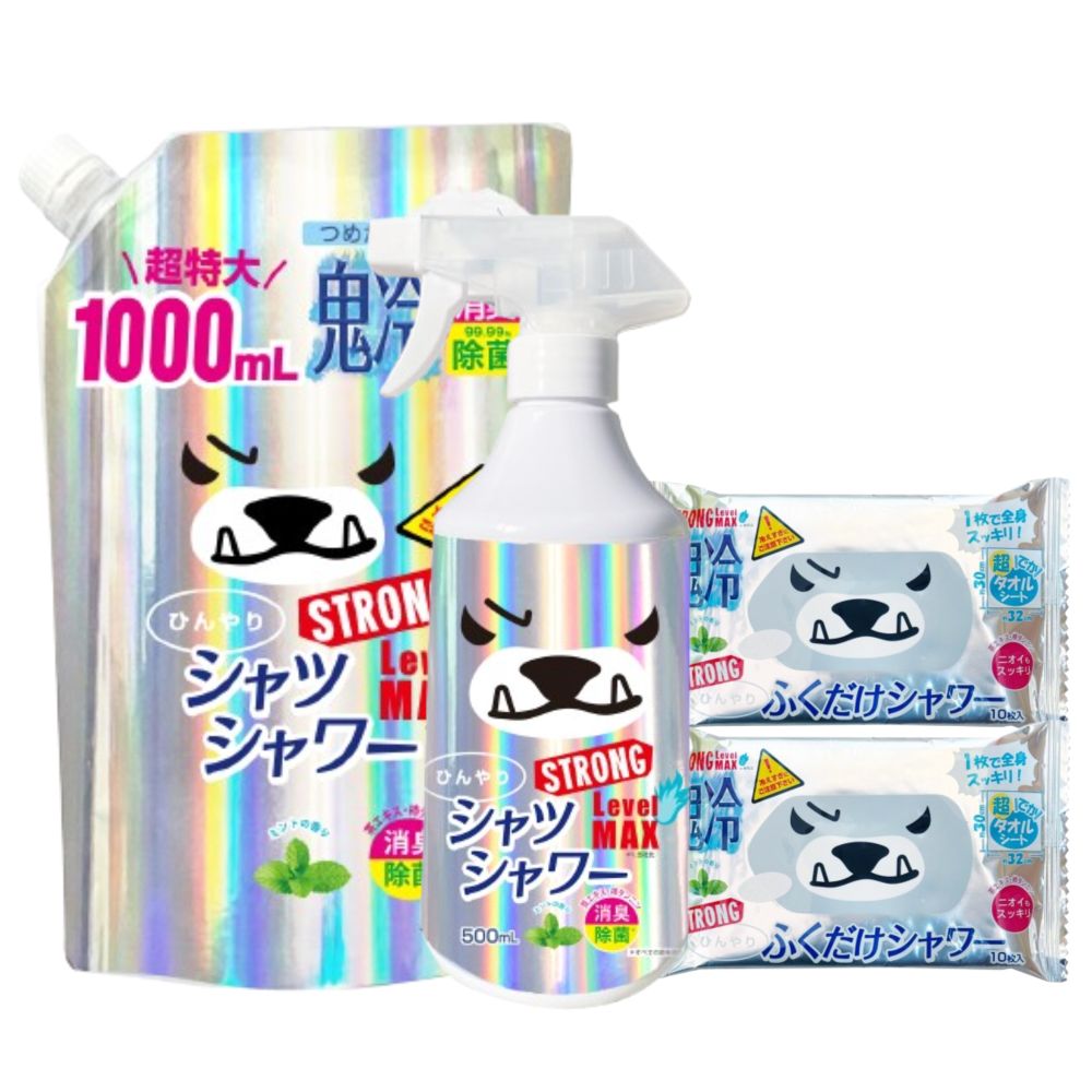 【鬼冷最強セット】ひんやりシャツシャワー ストロング レベルMAX×1個+つめかえ 1000mL×1個+ふくだけシャワー ×2個