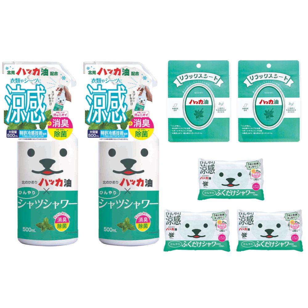 【送料無料:北見ハッカ特別セット】ひんやりシャツシャワー 北見ハッカの香り×2個+ひんやりふくだけシャワー 北見ハッカの香り×3個...