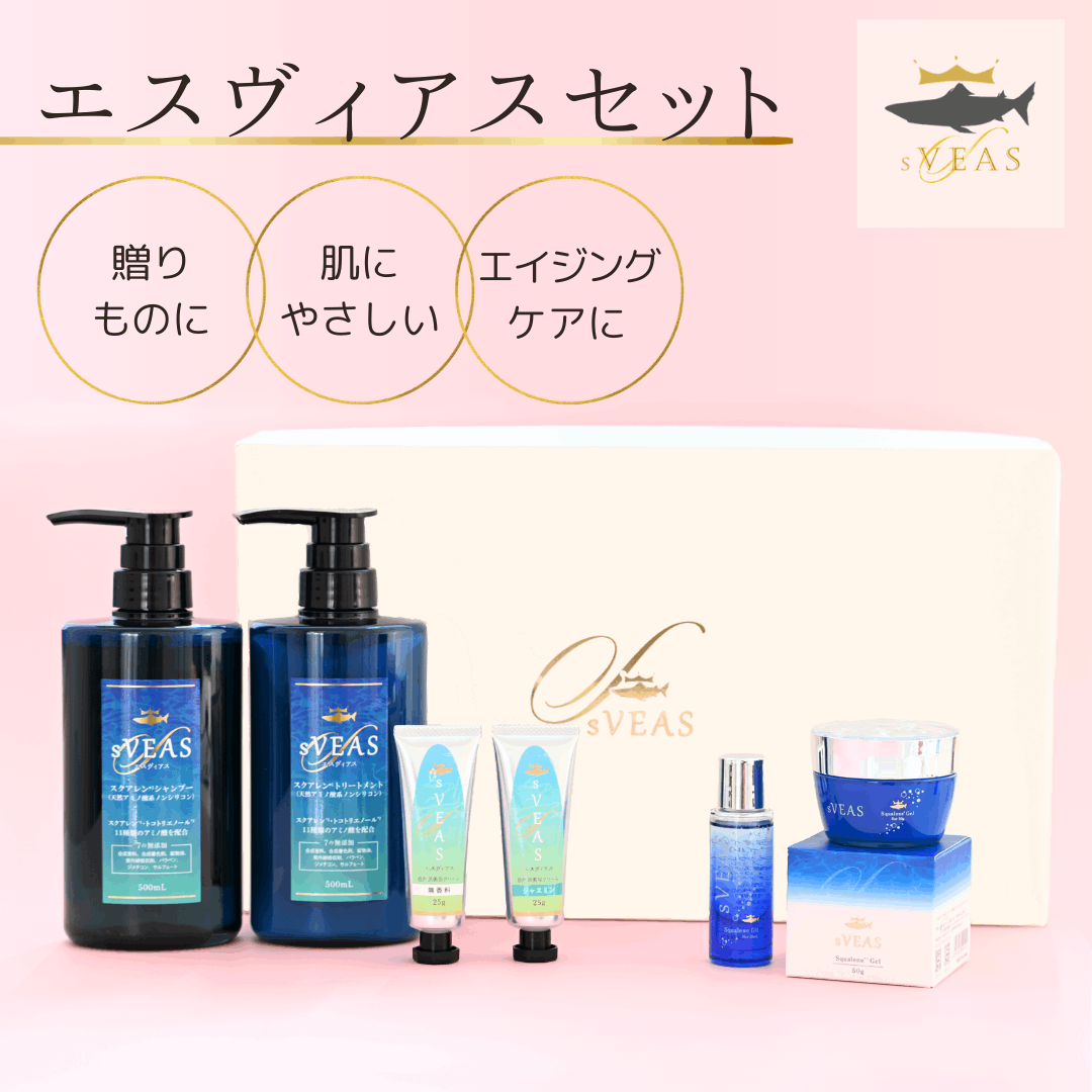 ギフト箱入りsVEASギフトセット クリームは2種類♪ プレゼント シャンプー トリートメント 美容オイル オールインワンジェル ...