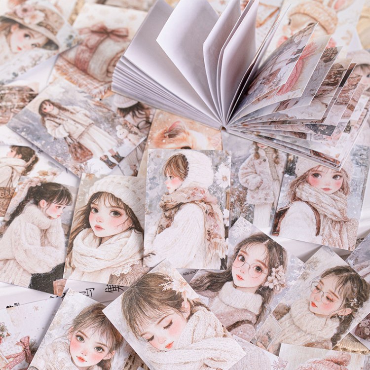 即日出荷 シールブック 50柄50枚 人物シール 女の子 魔法 少女 冬 コーヒー 珈琲 黒猫 フルーツ マステシール コラージュ...