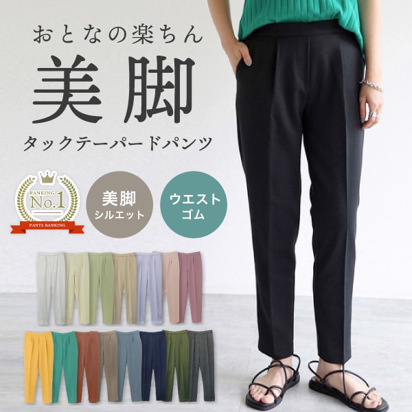 【A倉庫】大人の楽ちん 美脚 ウエストゴム テーパードパンツ タック パンツ 1000375 美脚パンツ スレディース ファッシ...