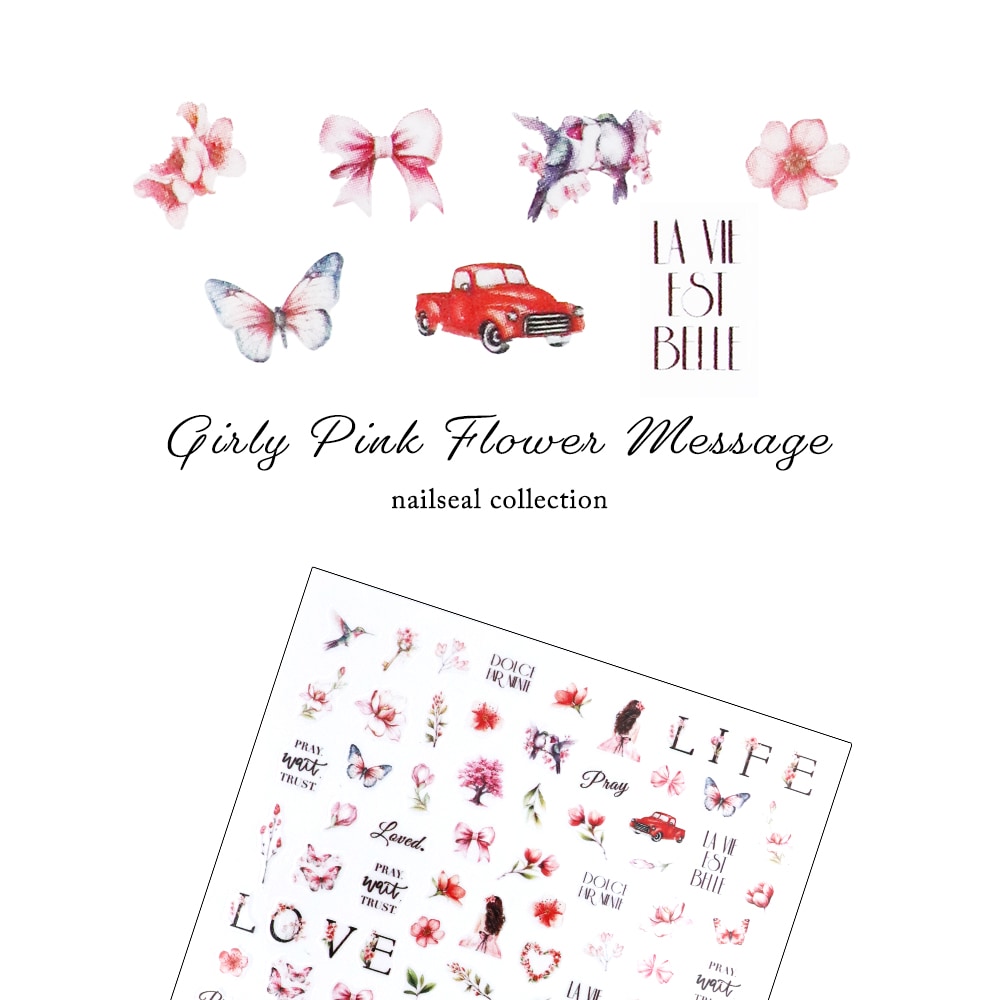 【ネコポス送料無料】ネイルシール ガーリーピンクフラワーメッセージシール