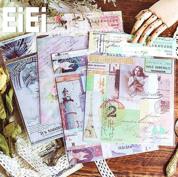 海外大きめシールシート 背景用 レトロデザインペーパー コラージュ ジャンクジャーナル ヴィンテージ 素材 素材紙 素材ペーパー...