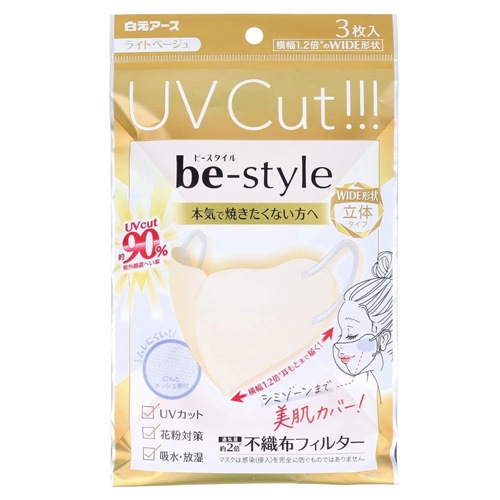 【メール便 送料無料】ビースタイル UVカットマスク ライトベージュ 3枚入