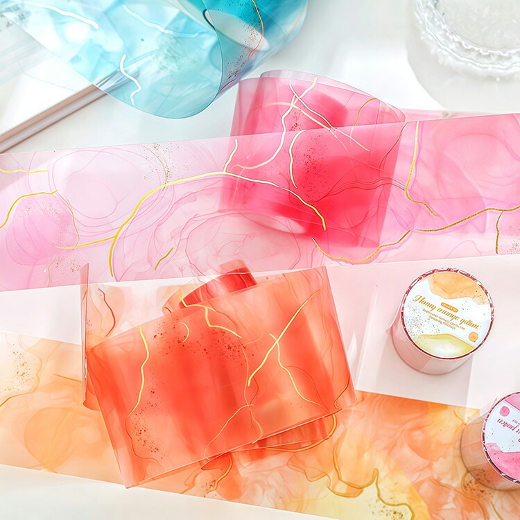 即日出荷 金箔押し クリアテープ 幅広60mm 水彩 流れ 動き 水流 海波 波 ビーチ ラメ 飾り 背景 ぼかし 染め 暈染 P...