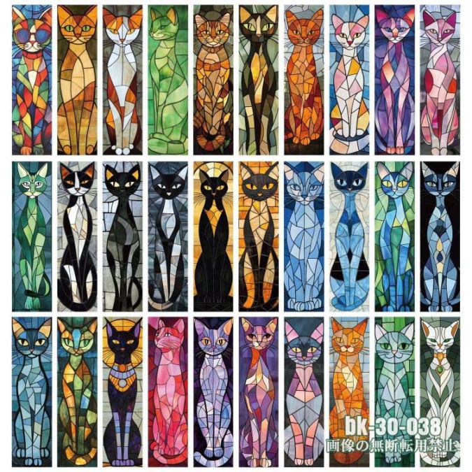 即日出荷 しおり 栞 30柄30枚セット ブックマーク ステンドグラス風 カラフル 猫 ネコ 紙製 おしゃれ 全てのイラストが全て...