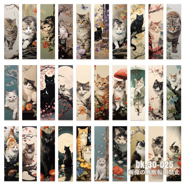 即日出荷 しおり 栞 30柄30枚セット ブックマーク 和風 猫 ネコ ねこ 花柄 植物 葉 紙製 おしゃれ 全てのイラストが全て...