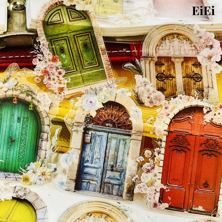 即日出荷 クリアシール 透明 ステッカー 耐水 PET素材 海外 コラージュ 素材 セット 扉 門 窓枠 窓 鳥籠 額縁 花柄 ...