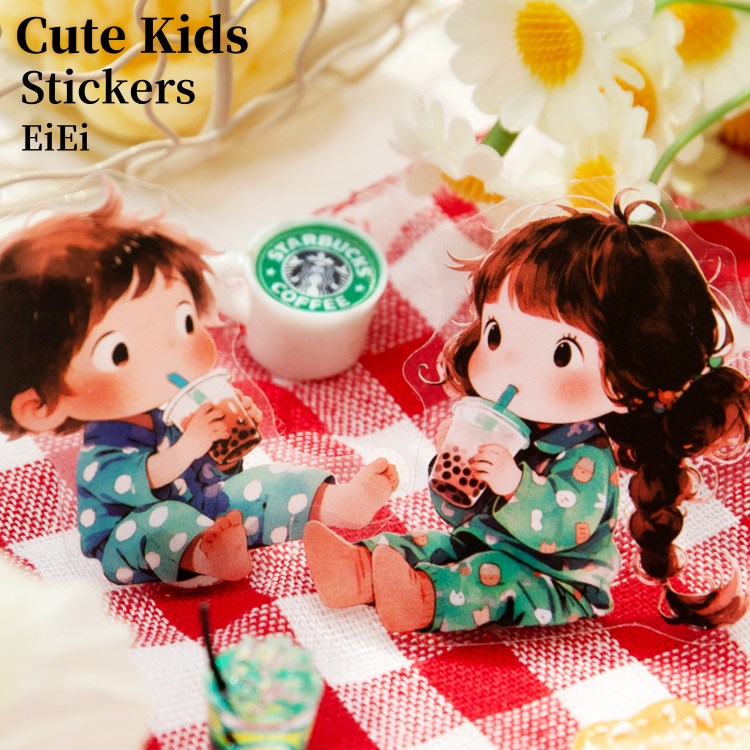 即日出荷 人物シール かわいい 子ども キッズ 子供 男の子 女の子 少女 ねこ 猫 動物 いぬ 熊 くま 耐水 シール キャラク...