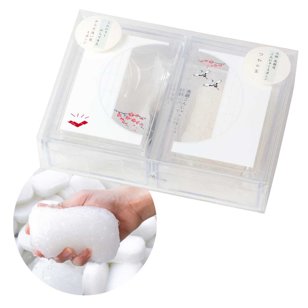 つやの玉セット こんにゃくスポンジ2種入 洗顔用+からだ洗い用 天然の植物繊維でやさしく 洗い上げます ケース入り 兵庫県の工芸品