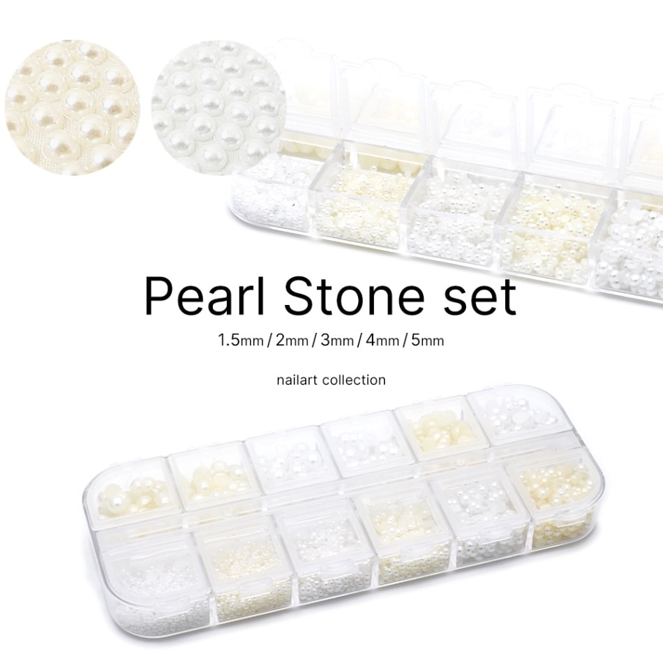 【ネコポス 送料無料】パールストーン ネイルパーツセット 1.5mm~5mm(ホワイト/クリーム) 12個口ケース入り 推し活 デ...