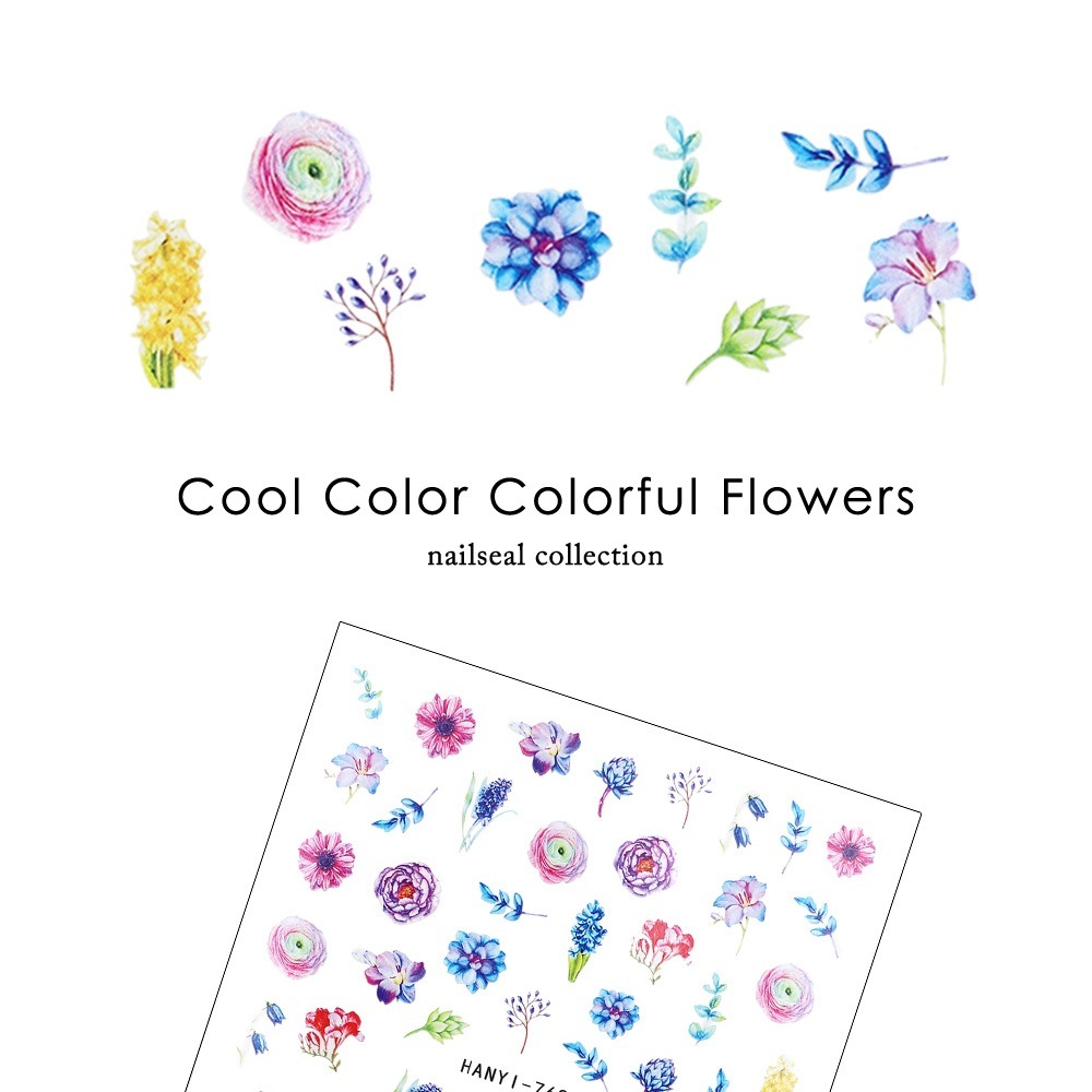 【ネコポス送料無料】ネイルシール 寒色カラフルフラワーシール