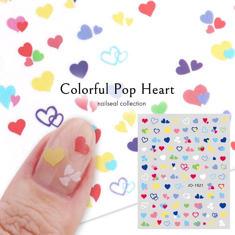 【ネコポス送料無料】ネイルシール カラフルポップハートシール