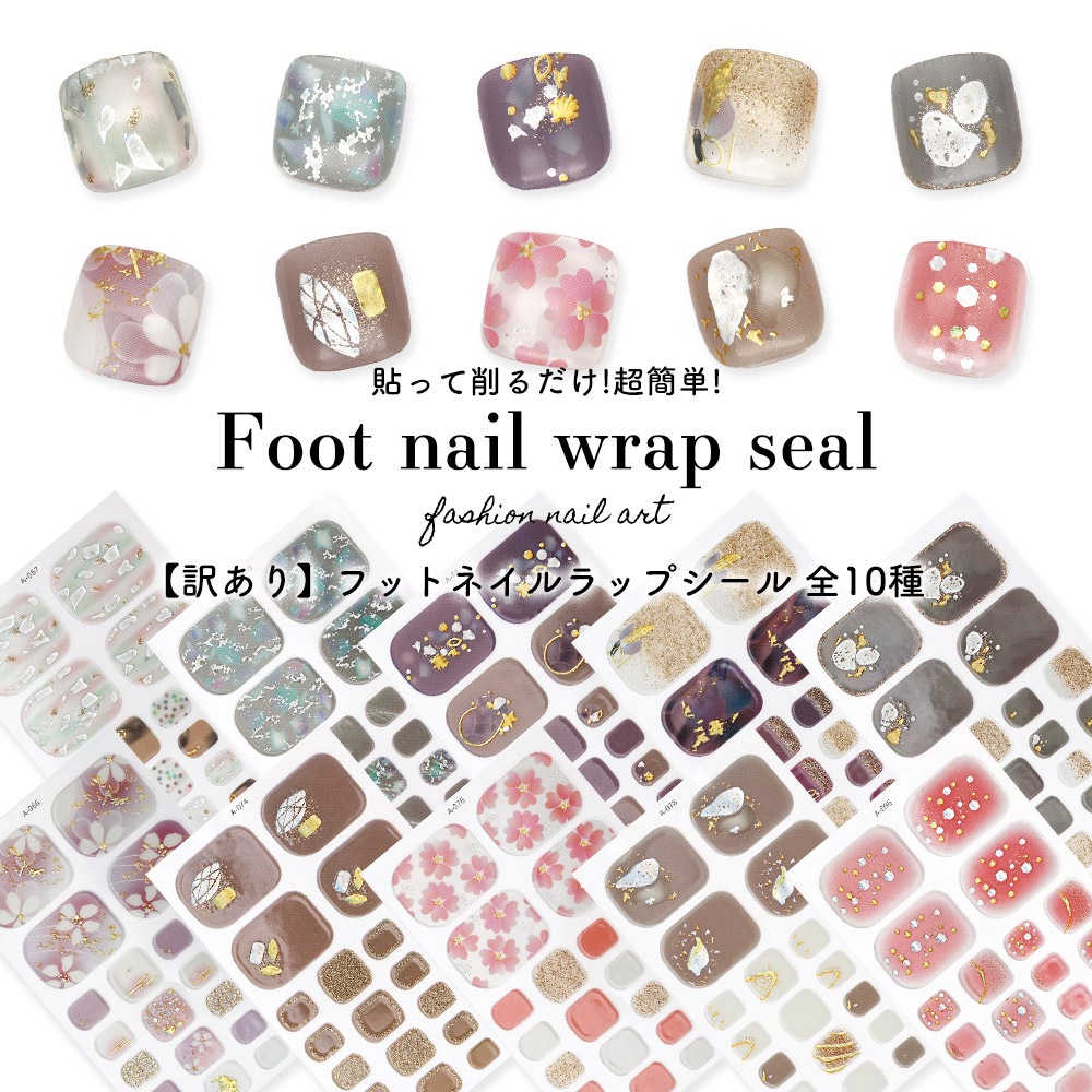 【ネコポス送料無料】【訳あり】貼るだけで完成 フットネイルシール サロン級デザイン 全10種 ネイルラップ ネイルシール