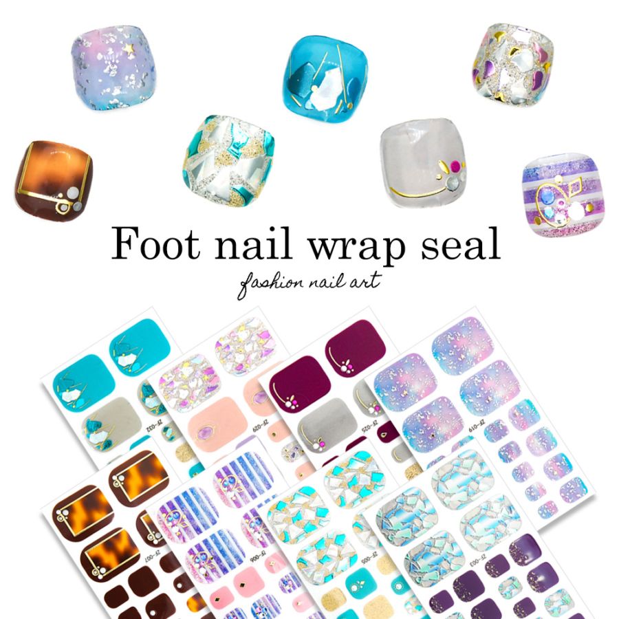 貼るだけで完成 フットネイルラップシール シール サロン級デザイン全8種 ネイルラップ ネイルシール フット セルフネイル フット...