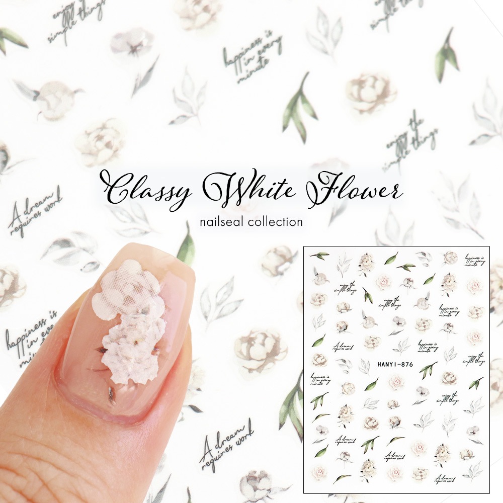 【ネコポス送料無料】ネイルシール ホワイトフラワー&メッセージシール