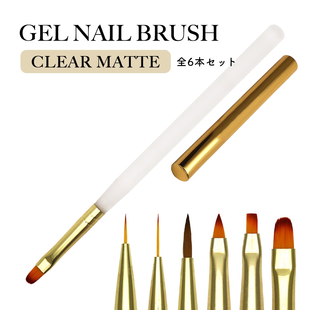 【ネコポス送料無料】ネイルツール ジェルネイルブラシ クリアマット 6本セット