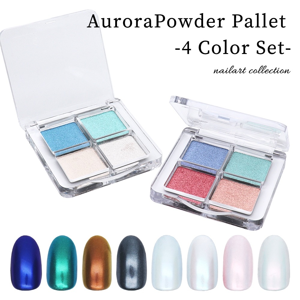 【ネコポス送料無料】ネイルアート オーロラパウダーパレット 4色セット 全2種