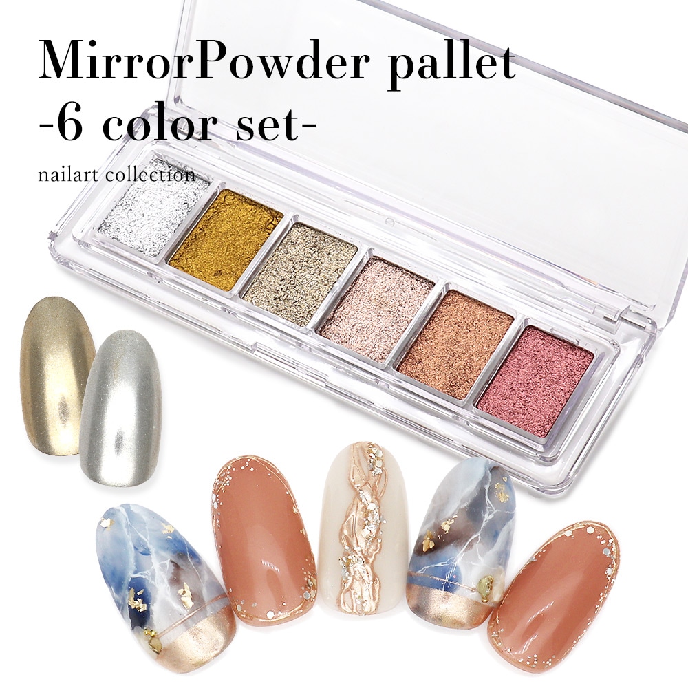 【ネコポス送料無料】ネイルアート ミラーパウダー6色パレット ミラーパウダー メタリックパウダー ジェル