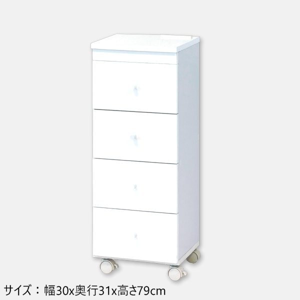 スリムキャスターワゴン W30 4段収納 幅30cm
