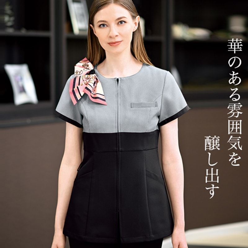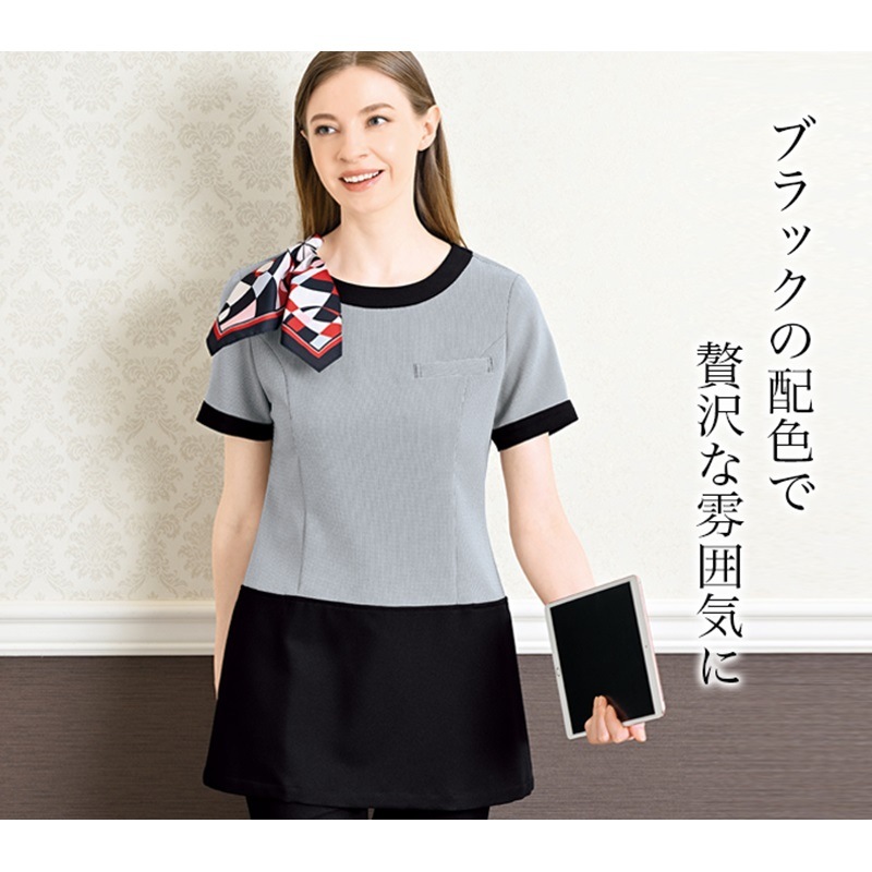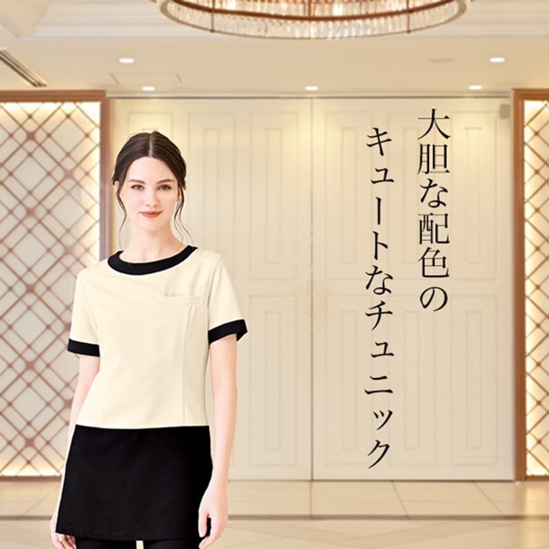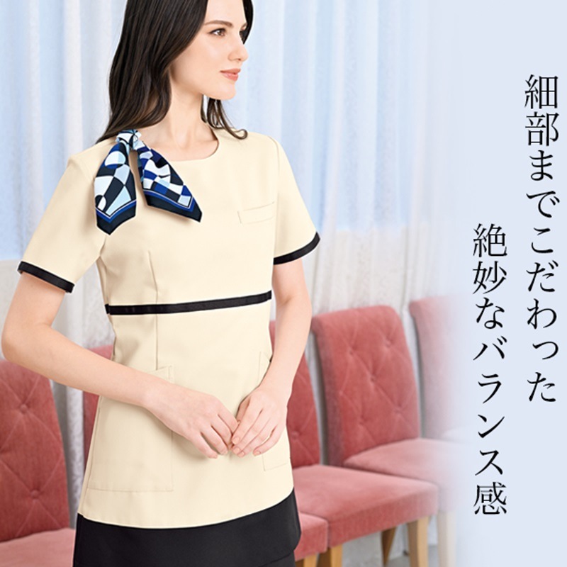 E-3112 チュニック ライトベージュ×ブラック SHIROTA(シロタ)