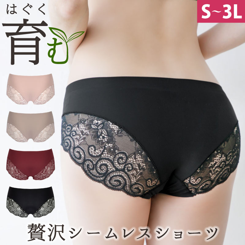 贅沢シームレスショーツ ショーツ シームレスショーツ 1枚 単品 M L LL 3L レースがかわいい 楽ちん アウターにひびきに...