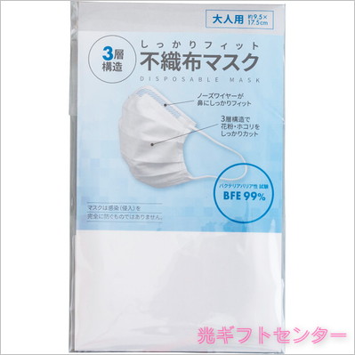 3層構造不織布マスク(1枚)個包装 SC-2040-1