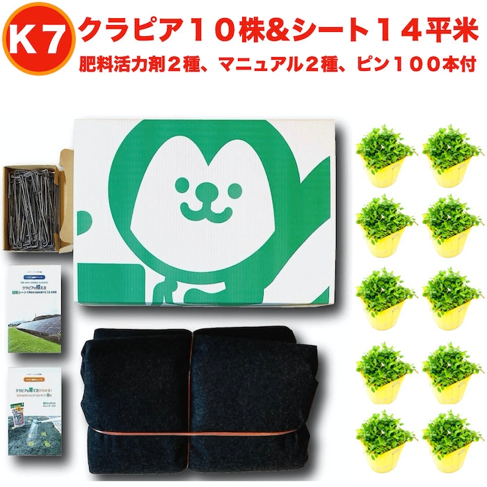 【レビュー特典あり】 クラピアK7(白) ポット苗10株 すくすくシート14平米+J字型ピン100本 肥料 活力剤2種、完全植栽マ...