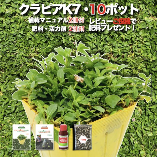【レビュー特典あり】 クラピア K7(白) 白品種 10株 すくすくセット 植栽マニュアル付き 苗10ポット 肥料 活力剤 2種付...