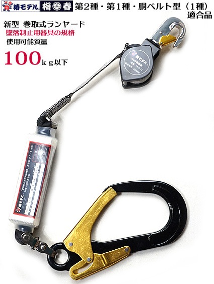 椿モデル 巻取式ランヤード 3タイプ適合(第2種 ・1種・胴ベルト型B種 適合)【使用可能質量100kg】 巻取式 フルハーネス...