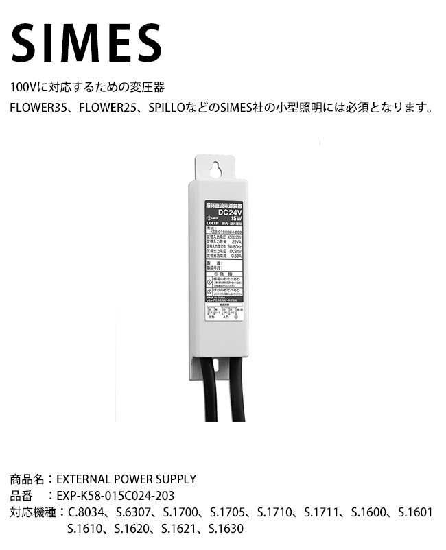 【イタリアSIMES社製照明用オプション】EXTERNAL POWER SUPPLY・変圧器 品番:EXP-K58-015C024...