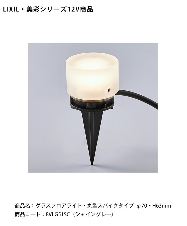 【LIXIL美彩12V照明】グラスフロアライト・ 丸型スパイクタイプ /ケーブル長1.5m(防水コネクタ付)消費電力:1.8W 器...