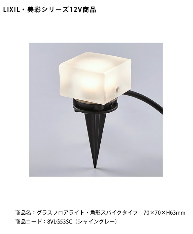 【LIXIL美彩12V照明】グラスフロアライト・ 角形スパイクタイプ /ケーブル長1.5m(防水コネクタ付)消費電力:1.8W 器...