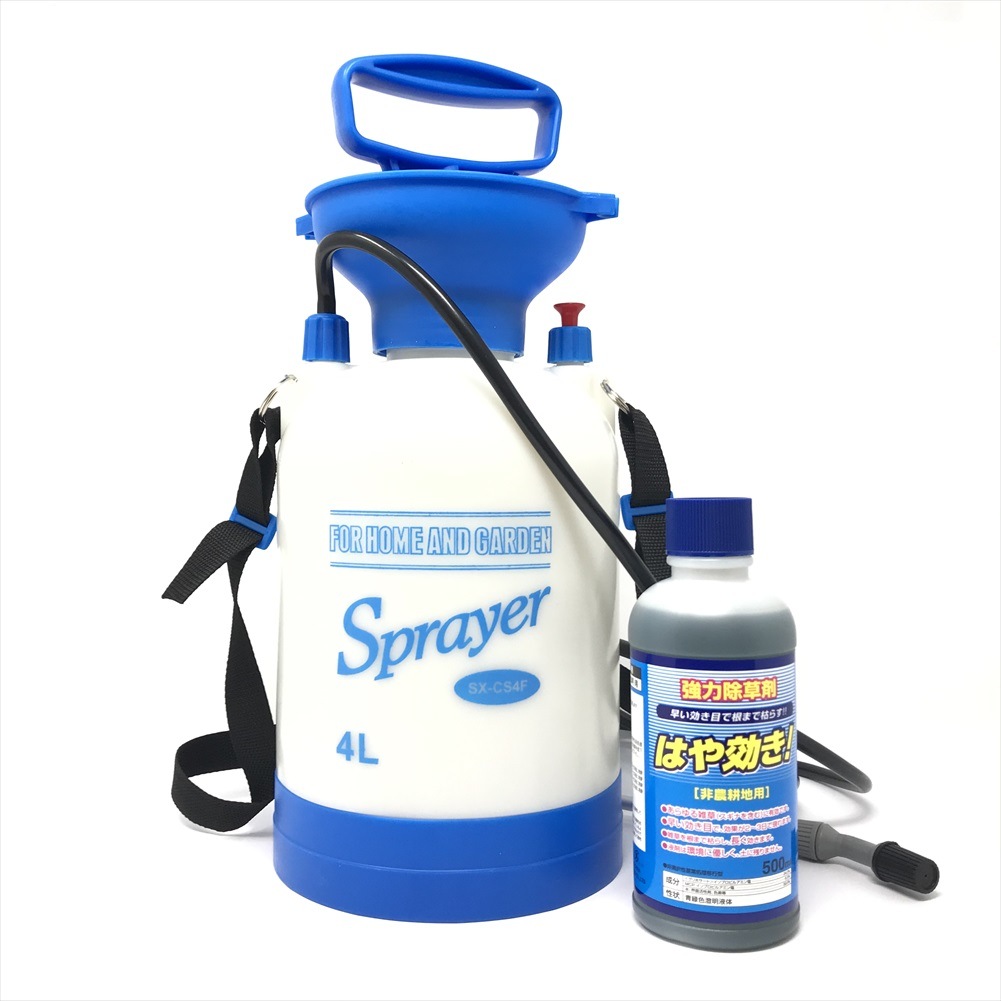 【まとめ買いセット】シンセイ噴霧器4L 蓄圧式肩掛けタイプ+強力 除草剤 はや効き!500ml(500平米/150坪)