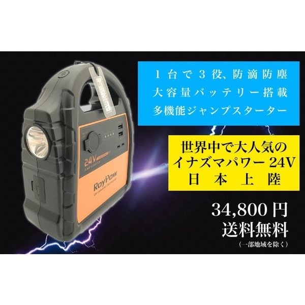 ポータブル電源 24V 高機能ジャンプスターター 大容量30000mAh モバイルバッテリー スマホ&PC充電可 LED照明SOS...