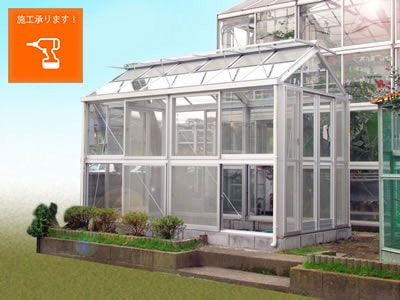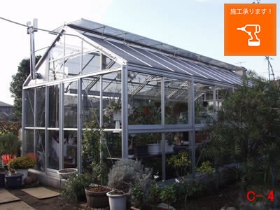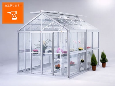 アルミ温室/2段サッシタイプ(C-2タイプ:間口3,600×奥行3,718×棟高3,119mm、4.0坪)4ミリ強化ガラス