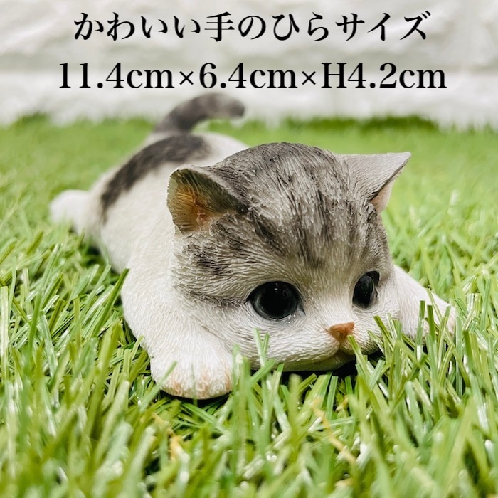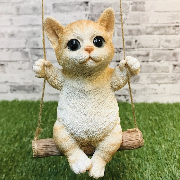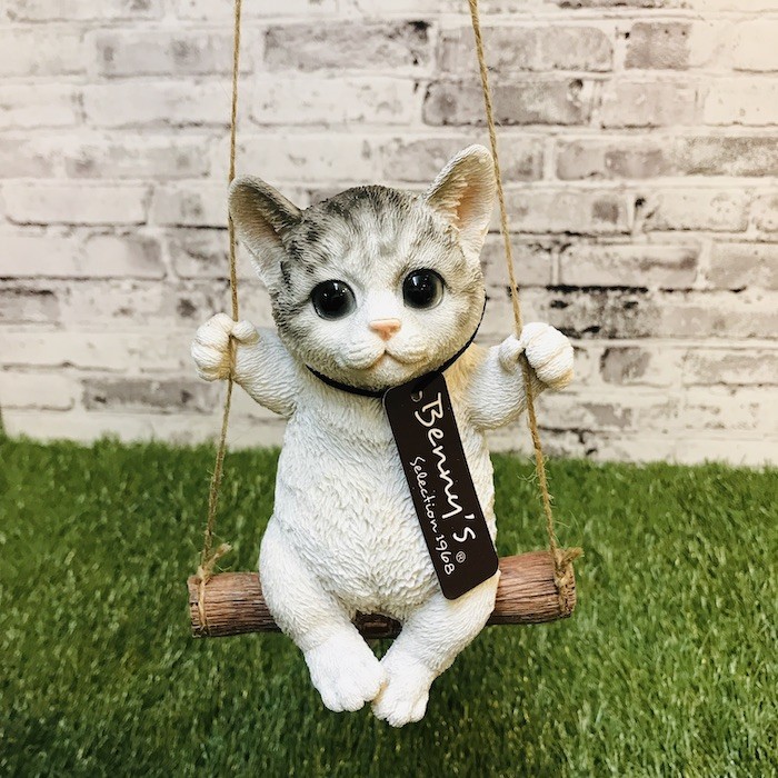ベニーズキャット ブランコ(サバ白) 猫 置物 可愛い リアル アニマルオブジェ インテリア かわいいネコ 動物 子猫 仔猫 ガー...