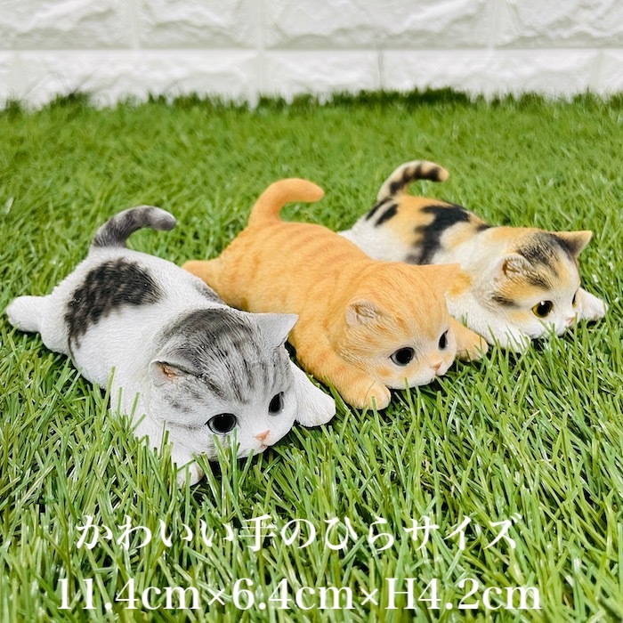 ベニーズキャット ゴローン(ミケ)猫 置物 可愛い リアル アニマルオブジェ インテリア かわいいネコ 動物 子猫 仔猫 ガーデン...