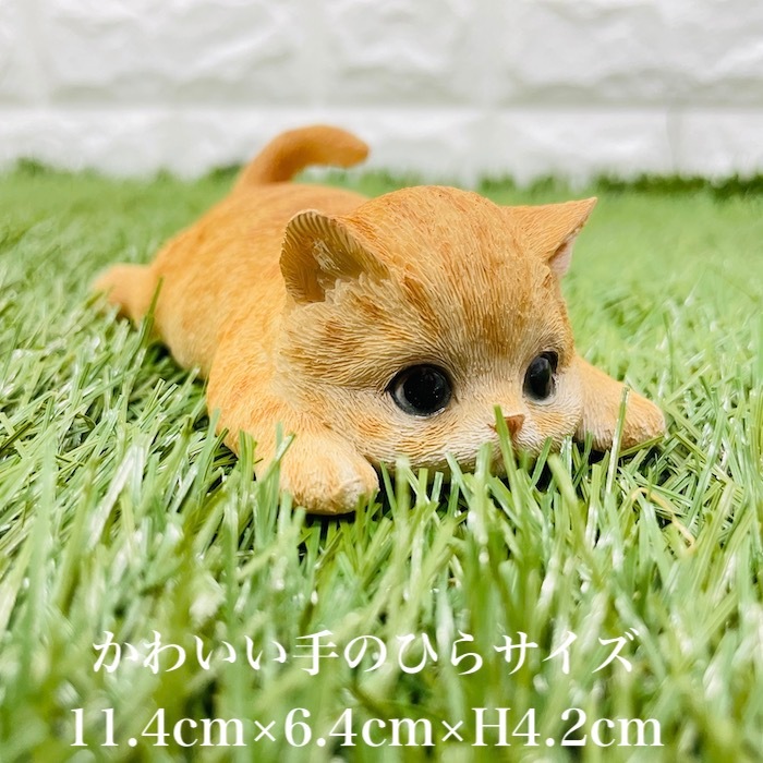 おじぎキャット 子(茶トラ白)猫 置物 可愛い リアル アニマルオブジェ インテリア かわいいネコ 動物 子猫 仔猫 ガーデンオー...
