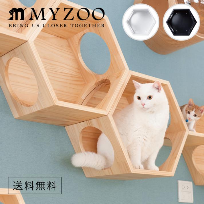 MYZOO マイズー BUSYCAT 六角ハウス ビジーキャット カラー ホワイト/ブラック/パイン材 【1個】 キャットウォーク...