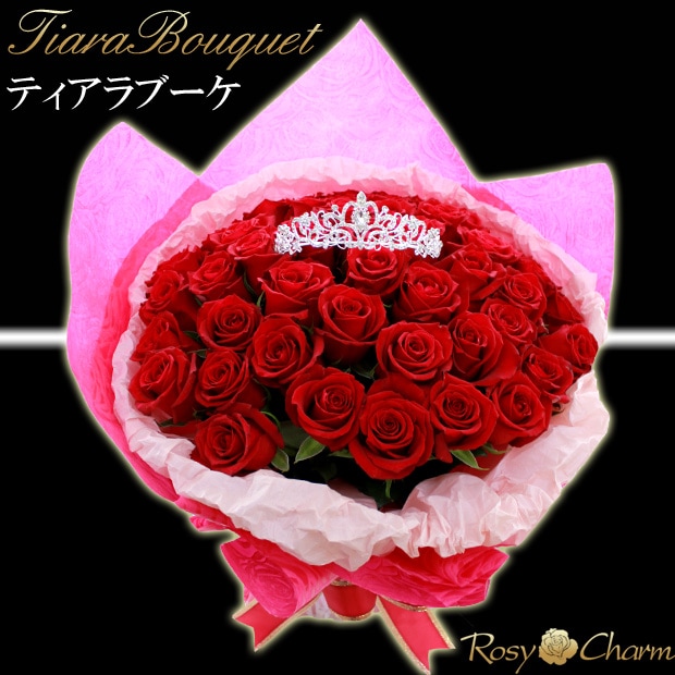 バラの花束 50本|ティアラブーケ|プロポーズ・誕生日・記念日のお祝いに贈る薔薇【生花】