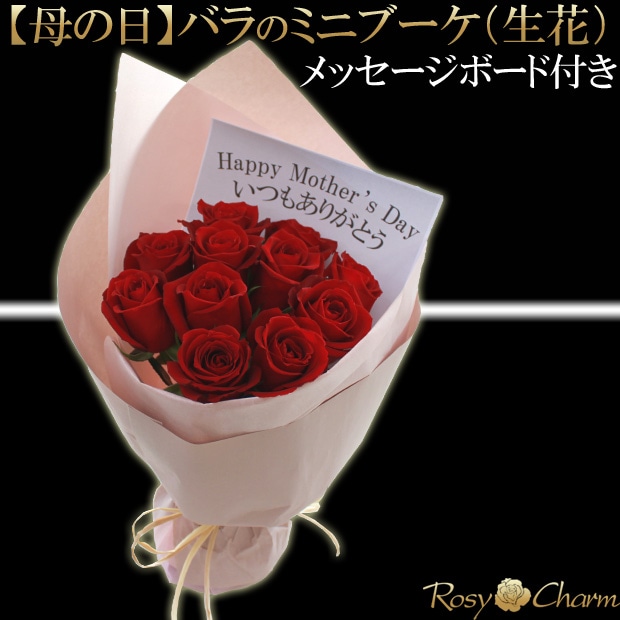 【母の日】バラのミニブーケ(生花)|メッセージボード付き|そのまま飾れる花束 スタンディングブーケ