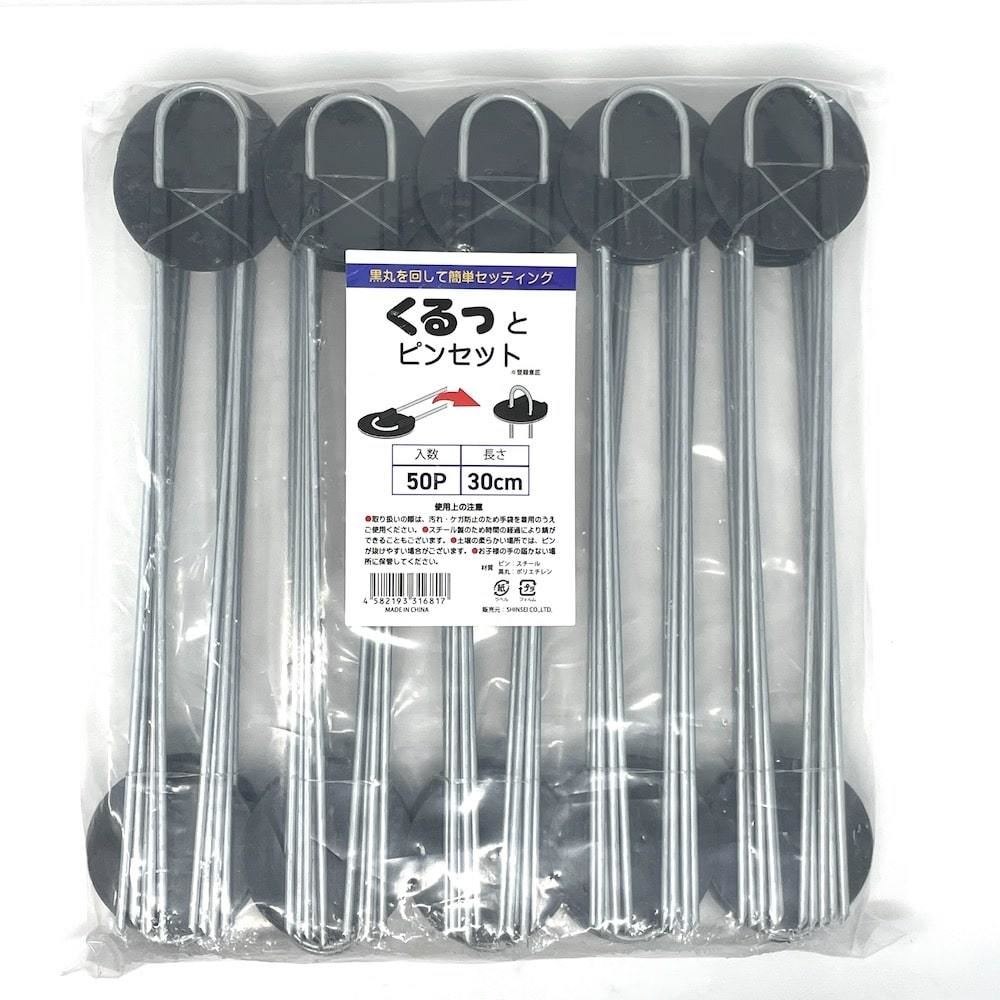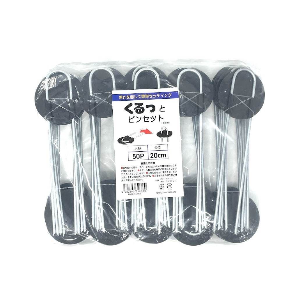 防草シート用 くるっとピン Uピン杭 ワッシャー付き 長さ20cm 500本 50P×10個セット アンカー 黒丸 U字型