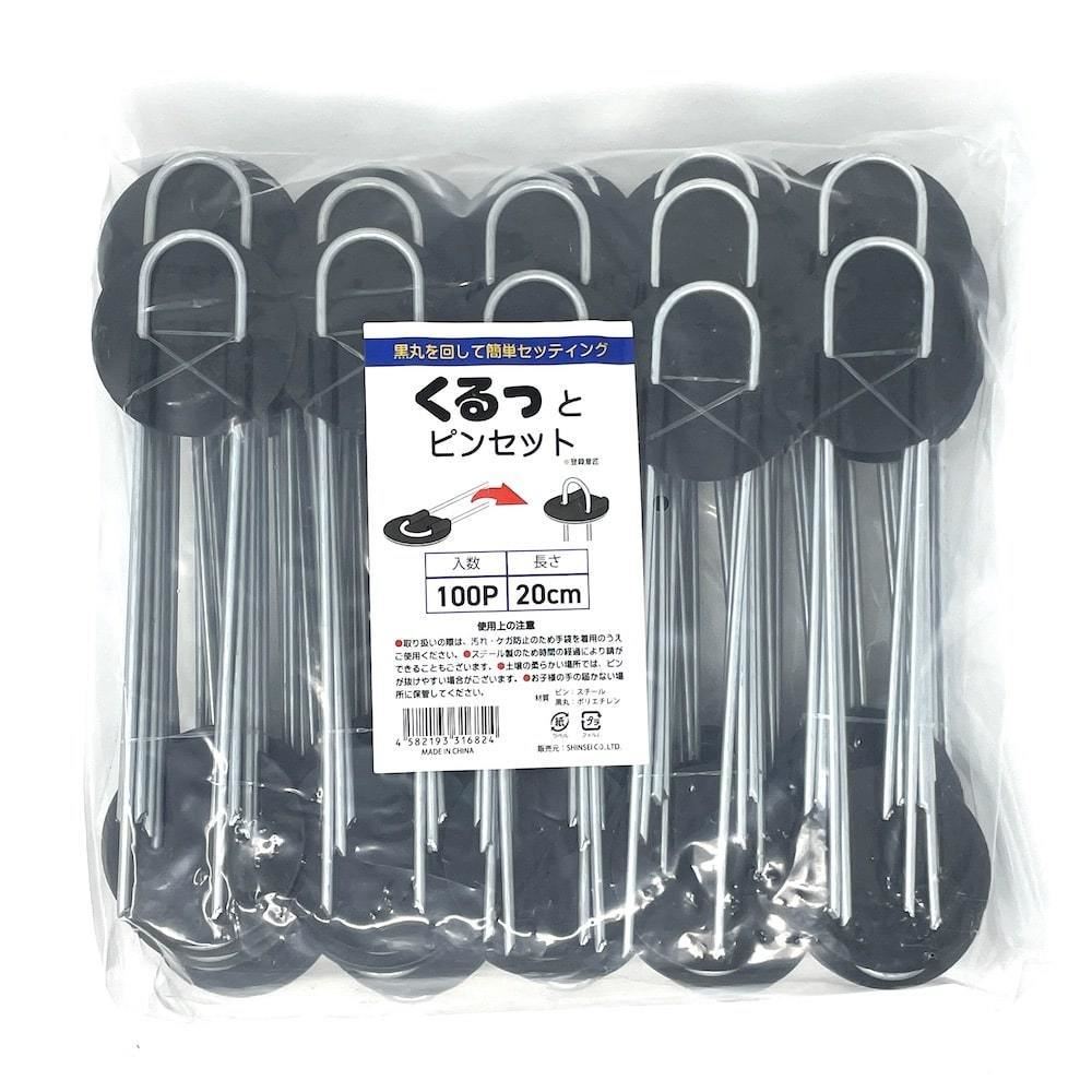 防草シート用 くるっとピン Uピン杭 ワッシャー付き 長さ20cm 1200本 100P×12個セット アンカー 黒丸 U字型