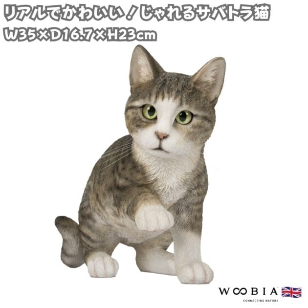 置物 じゃれるサバトラ猫 ネコ 高さ23cm woobia ウービア 大きい かわいい おしゃれ ガーデン インテリア オブジェ ...