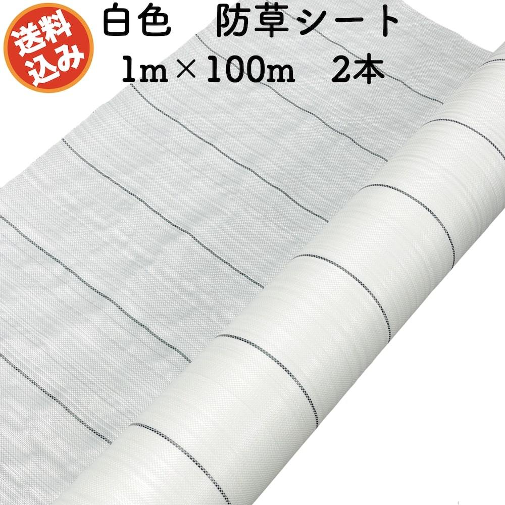 防草シート 白色(サンホワイト) 1m×100m 2本セット 抗菌剤入り UV剤入り 反射シート 草抑え 除草シート 雑草防止シ...